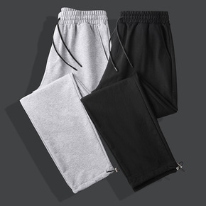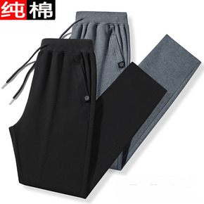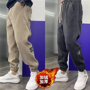 秋冬季男士加厚休闲裤宽松纯色卫裤束脚裤子九分长裤简...