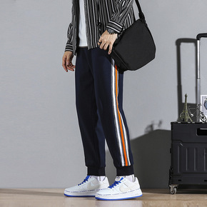 亚马逊日韩青年男式休闲针织裤九分束脚裤子运动薄卫裤...