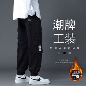 机能工装裤男束脚潮牌宽松大码休闲痞帅潮流纯棉加绒裤...