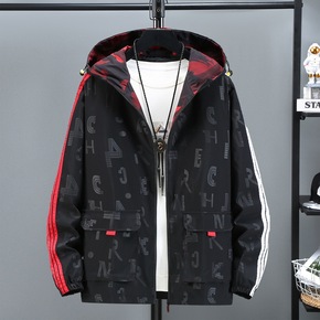北界男装外套男2021新款春季日系潮牌宽松字母刺绣...