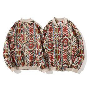 批发秋冬新款欧美潮牌复古花花民族风嘻哈织绣夹克棒球...