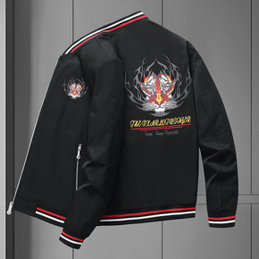 国潮火虎头刺绣夹克男2022春秋新款潮流中国风棒球...