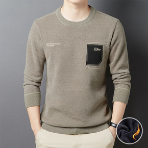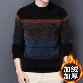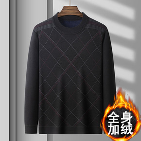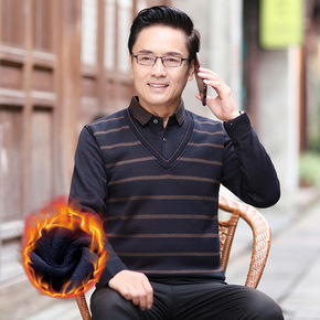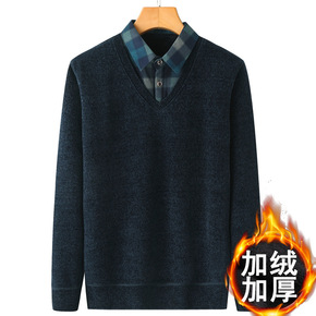爸爸毛衣加绒加厚假两件中老年人男针织打底衫冬季爷爷...