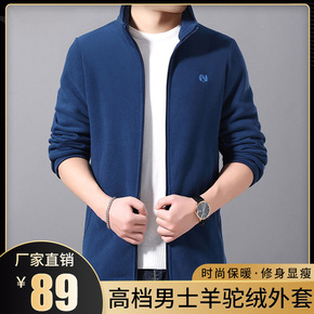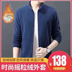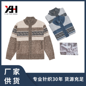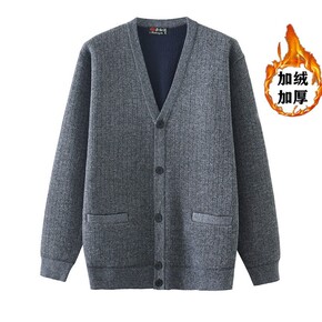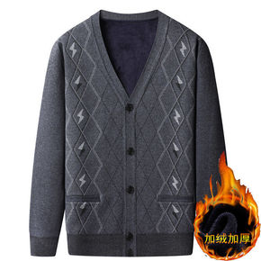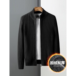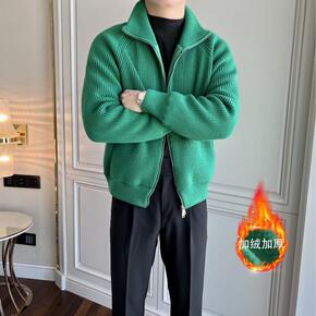 冬季毛衣外套男英伦复古休闲立领加绒加厚针织开衫保暖...