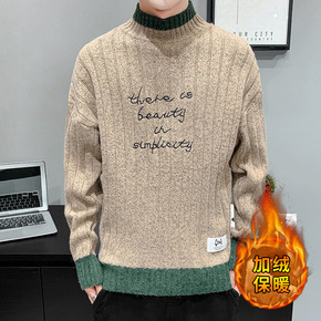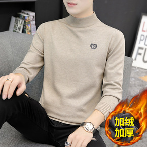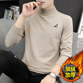 包邮毛衣男韩版潮流宽松百搭加绒加厚潮牌半高领针织衫...