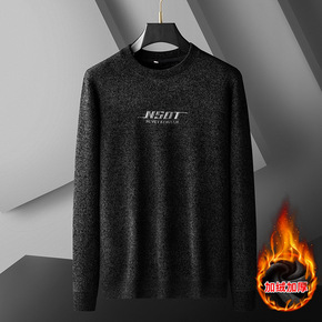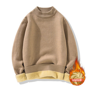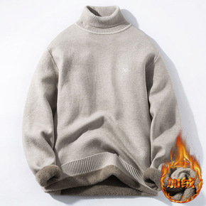 一体绒针织衫男秋冬季加绒加厚半高领毛衣2022新款...