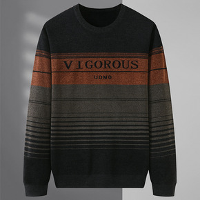 新款秋冬男士毛衣圆领潮流纯色针织衫假两件撞色休闲线...