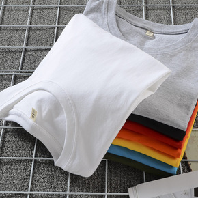 针织上衣纯色圆领短袖t恤批发男生重磅夏白t男士体恤...