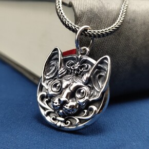 纯银吊坠男创意时尚挂坠比鲁斯吊坠S925银无毛猫咪...