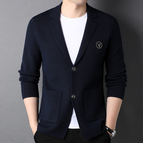男士韩版潮流气质西装领单排扣长袖针织开衫春秋季新款...