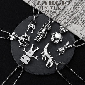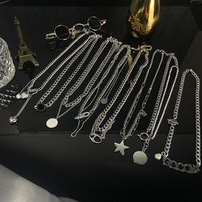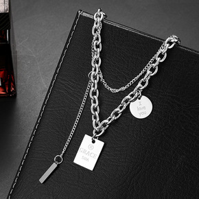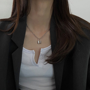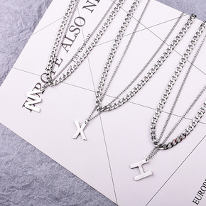 钛钢不褪色字母吊坠项链百搭叠戴锁骨链男潮ins风嘻...