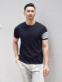 新升级 冰感纱线 男士夏季商务休闲针织圆领短袖T恤...