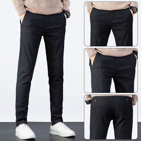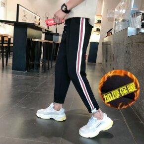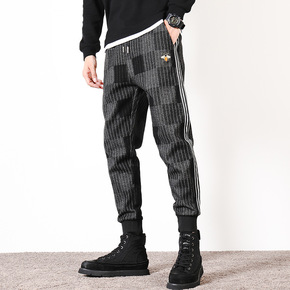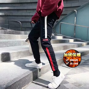 秋冬季新款裤子男韩版潮流束脚百搭休闲裤男修身条纹加...