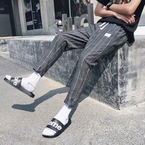 裤子男韩版潮流夏季休闲9分裤男工装九分裤修身哈伦裤...