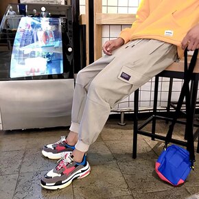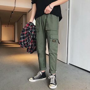 夏季九分裤工装裤子男士韩版潮流束脚裤宽松哈伦裤修身...
