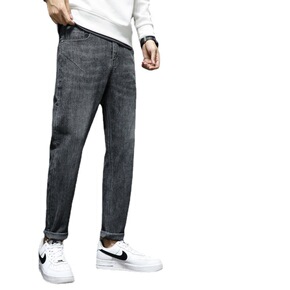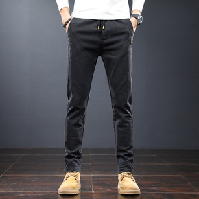 21秋季青少年纯色牛仔长裤男士棉中腰休闲微弹宽松小...