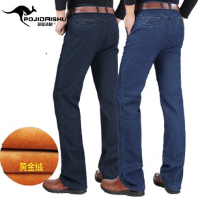 珀基袋鼠冬季加绒加厚中年牛仔裤中老年休闲高腰直筒保...