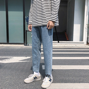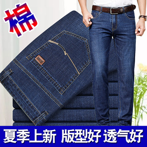 夏季浅色宽松牛仔裤男修身直筒青年夏天休闲男装薄款中...