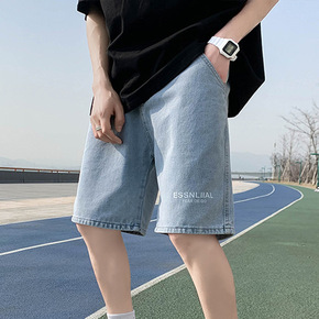 五分裤男牛仔裤港风ins潮流字母复古宽松直筒学院风...