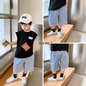 2022年韩国童装夏季新品儿童韩版五分裤软牛仔男女...