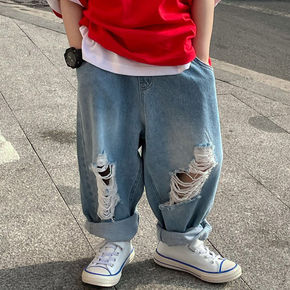 2022新款童装男童破洞牛仔裤春夏日韩个性宝宝休闲...