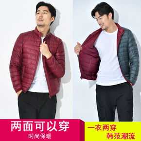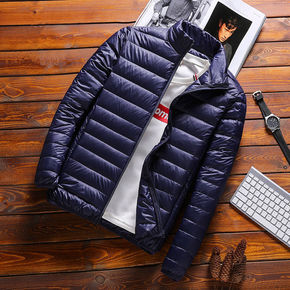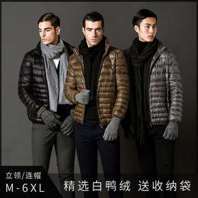 反季清仓秋冬轻薄羽绒服男士短款立领连帽中青年轻便薄...