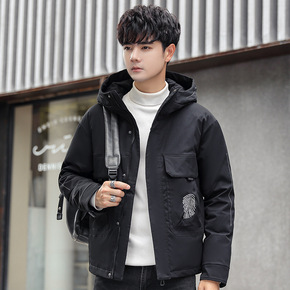 大牌男士短款连帽羽绒服男冬季潮流加厚保暖百搭修身鸭...