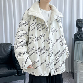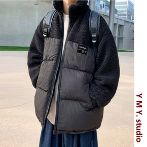 冬季羊羔毛拼接加厚棉服男潮牌潮流ins港风棉衣情侣...