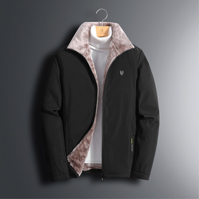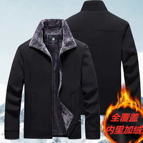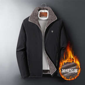 秋冬季大码外套男夹克衫加绒保暖棉服男爸爸装冬装中老...