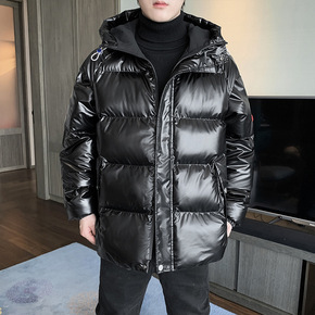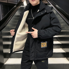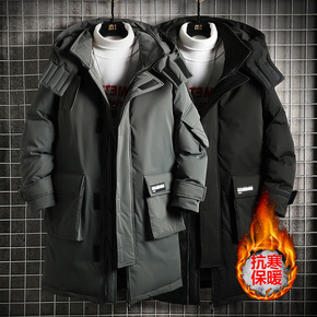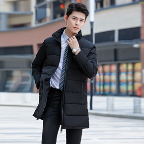 职业棉服男2021秋冬新款黑色中长加厚款棉衣珠宝店...
