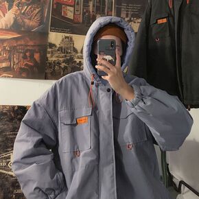 棉衣男连帽秋冬韩版潮流工装棉服外套ins学生潮港风...