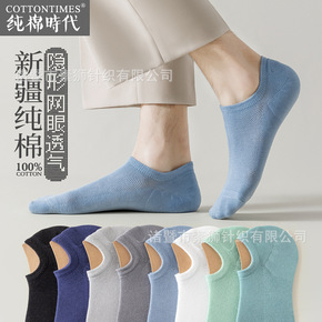 夏季隐形袜子男网眼透气 拼接色男短袜 复古风运动船...
