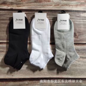 珺琦男春夏秋季短筒透气网面黑白灰净色棉袜子休闲船袜...