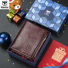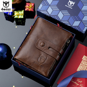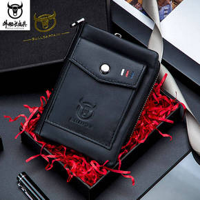 牛船长皮具钱包男真皮横款商务头层牛皮钱夹多功能卡槽...