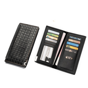 跨境货源男士钱包长款编织纹皮夹插卡证件包商务竖款多...