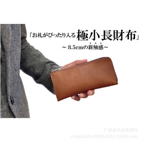 日亚头层树膏皮大容量男士高档钱包 长款枥木植鞣皮拉...