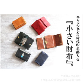 日本荔枝纹真皮硬币三折短款钱包 创意超小手掌钱包...