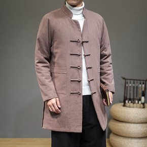2020中国风男装复古棉服男中长款唐装盘扣外套加厚...