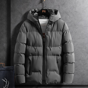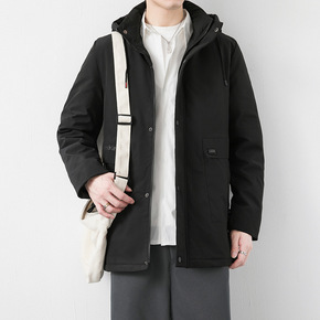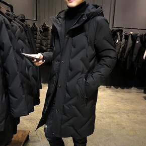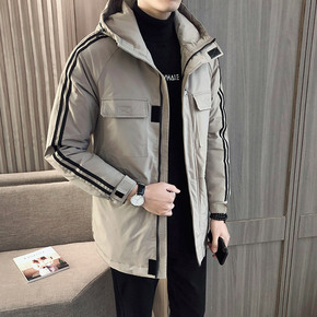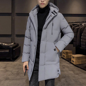 男士冬装新款羽绒服时尚韩版中长款男式纯色休闲连帽厚...