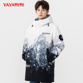 鸭鸭情侣款羽绒服中长款2021年冬季新款雪山渐变时...
