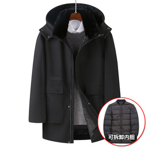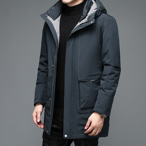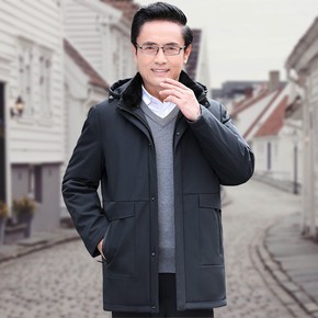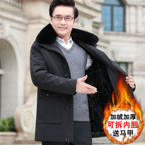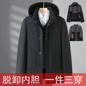 冬季加厚羽绒服男可脱卸帽中老年男士新款休闲中长款男...