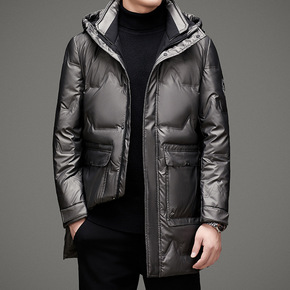 冬季新款潮牌中长款羽绒服男士宽松光感亮面连帽保暖白...