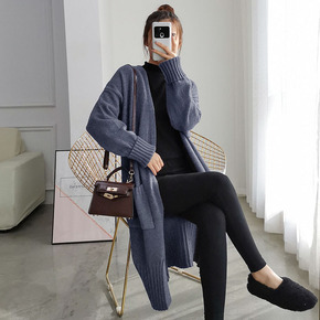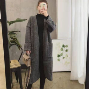 长款针织开衫早秋网红过膝慵懒风韩版新款潮宽松毛衣外...