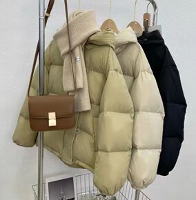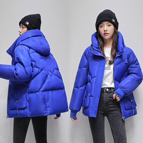 羽绒服女2022年新款韩版宽松小个子克莱因蓝面包服...