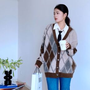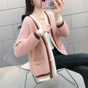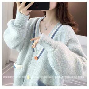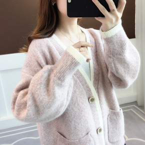 秋冬新款2021年韩版针织开衫女士毛衣外套V领宽松...