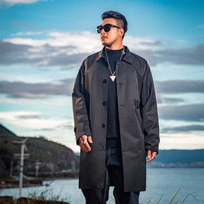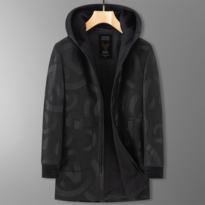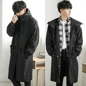 2019秋冬新男士国潮宽松版中长款连帽风衣时尚个性...