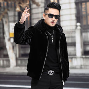 2021冬季新款貂皮大衣男整貂水貂皮连帽短款外套潮...