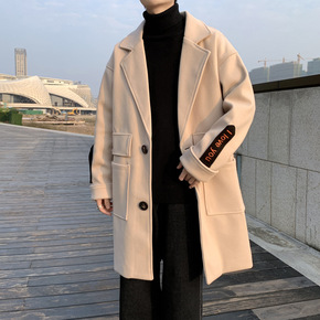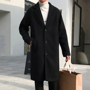 2021秋季新款青年男士毛呢大衣中长款纯色宽松单排...