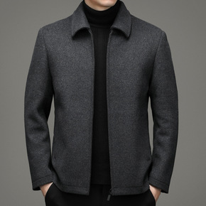 翻领长袖休闲毛呢外套男2021年秋冬季新款羽绒内胆...