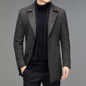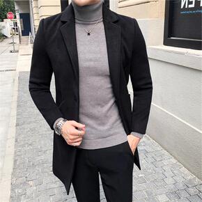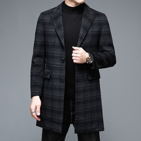 韩版修身男士呢大衣夹克秋冬款青年时尚中长款西装呢风...